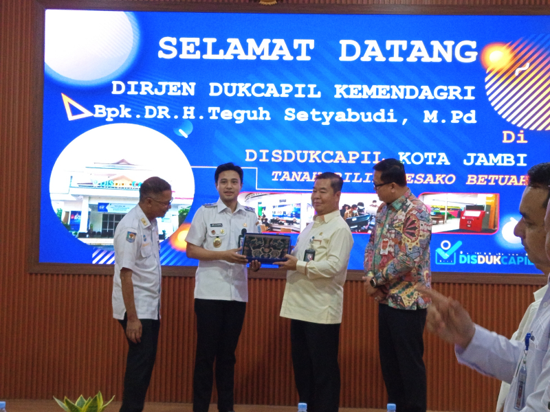 Dalam Kunjungan ini, Dirjen Dukcapil Teguh, didampingi oleh Wakil Walikota Jambi, Diza Hazra Aljhosa dan Kepala Dinas Dukcapil, Nirwan Ilyas bersama Jajarannya.