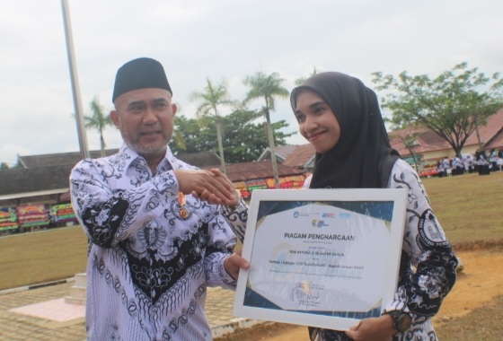Pada kesempatan tersebut, Bupati juga menyerahkan penghargaan kepada sejumlah guru dan siswa berprestasi. Tangan-tangan penuh harap menerima piagam dan simbol apresiasi, menandai kerja keras yang tidak pernah sia-sia. Penghargaan itu menjadi dorongan moral sekaligus motivasi bagi tenaga pendidik dan peserta didik untuk terus meningkatkan kualitas, kreativitas, dan prestasi di bidang masing-masing.