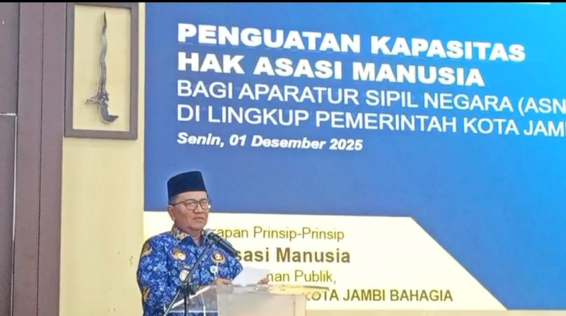 JAMBI, Bungopos.com - Pemerintah Kota (Pemkot) Jambi kembali menyelenggarakan Program Penguatan Kapasitas Hak Asasi Manusia (HAM) bagi Aparatur Sipil Negara (ASN). Kegiatan ini dibuka secara langsung oleh Wali Kota Jambi, Dr. dr. Maulana, M.K.M, Senin (1/12/2025), bertempat di Ballroom Graha Siginjai Kantor Wali Kota Jambi.