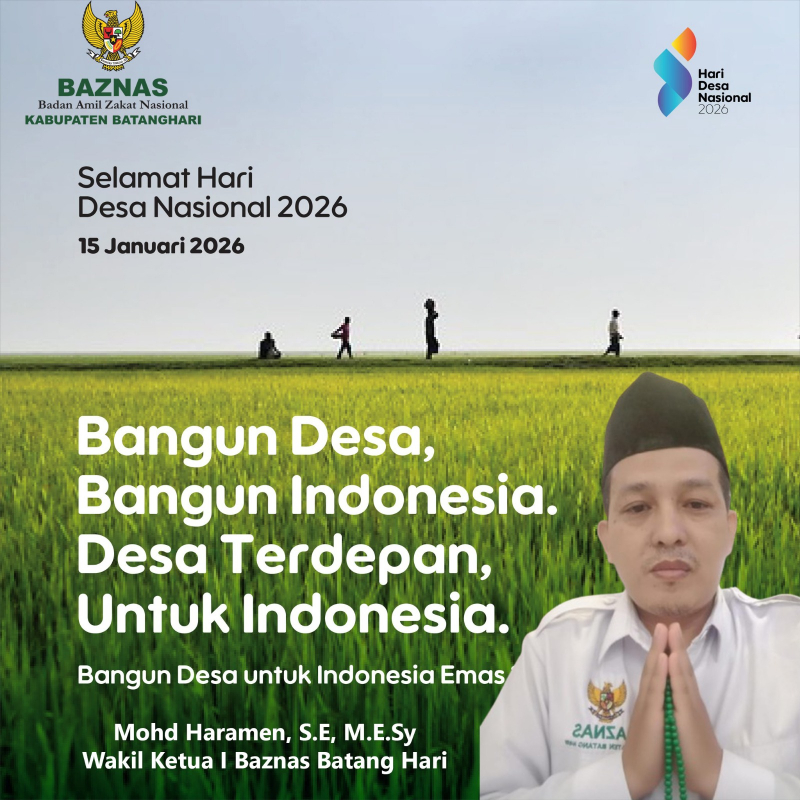 Mari kita jadikan zakat sebagai bukti cinta kita kepada sesama, dan sebagai jalan iman menuju desa yang berdaya, mandiri, dan sejahtera. Selamat Hari Desa, Desa Terdepan Membangun Indonesia.