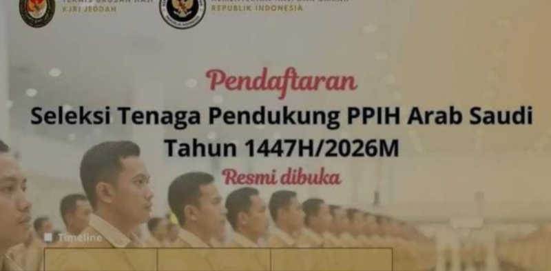 JAKARTA, bungopos.com - Kementerian Haji dan Umrah melalui Kantor Teknis Urusan Haji KJRI Jeddah membuka seleksi Tenaga Pendukung PPIH Arab Saudi Tahun 1447 H/2026 M. Seleksi Tenaga Pendukung PPIH Arab Saudi dibuka mulai hari ini Jumat, 16 Januari 2026 dibuka pukul 00:00 WAS. Calon peserta yang berminat diimbau untuk menyiapkan seluruh dokumen persyaratan yang dibutuhkan sebelum melakukan pendaftaran.