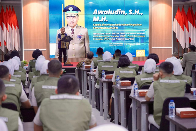 “Kami mempercepat proses layanan sertipikat pengganti pascabencana alam. Layanan tetap berjalan setiap hari, dan hari ini di Aceh Tamiang sudah mulai dilaksanakan dengan membuka posko layanan,” ujar Awaludin dalam kegiatan Penyerahan Taruna/i KKNP-PTLP STPN, di Aula Adhiguna, Kantor Wilayah (Kanwil) BPN Provinsi Sumatera Utara, Medan, Selasa (10/02/2026).