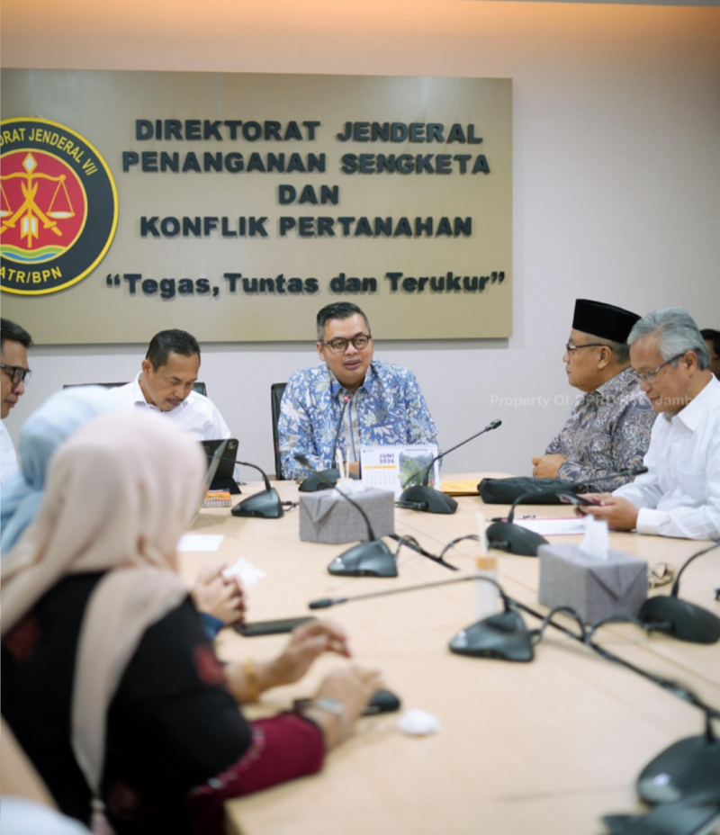 Pertemuan berlangsung di ruang rapat Direktorat Jenderal Penanganan Sengketa dan Konflik Pertanahan lantai 3 Kementerian ATR/BPN. Delegasi DPRD Kota Jambi diterima langsung oleh Direktur Jenderal Penanganan Sengketa dan Konflik Pertanahan Iljas Tedjo Prijono, didampingi Direktur Pencegahan dan Penanganan Konflik Pertanahan Brigjen Pol Hendra Gunawan serta Direktur Penanganan Perkara Pertanahan Joko Subagyo.
