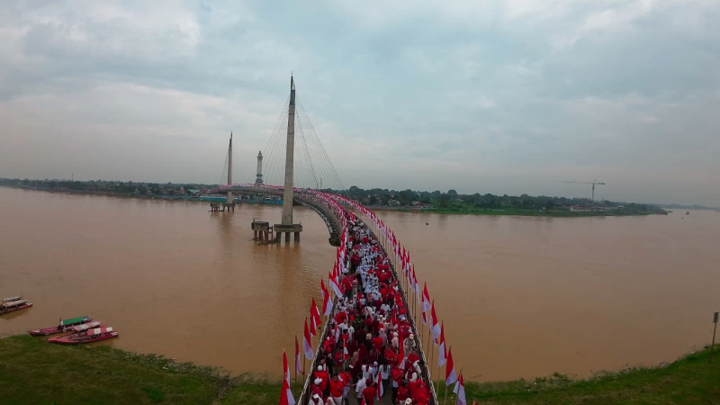 "Hari ini Pemerintah Provinsi Jambi bersama Pemerintah Kota Jambi melaksanakan pengibaran lebih dari 2.000 Bendera Merah Putih di Jembatan Industrial. Kegiatan ini juga dirangkaikan dengan Kirab Merah Putih dan Gebyar Harmoni Indonesia dalam rangka memperingati Hari Ulang Tahun ke-80 Republik Indonesia. Tentu, ini menjadi momentum bersejarah sekaligus kebanggaan bagi masyarakat Jambi," ujar Gubernur Al Haris.