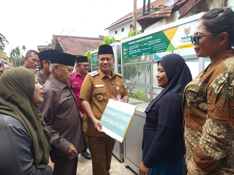 Dalam kesempatan tersebut, walikota Jambi Maulana menyerahkan bantuan kewirausahaan kepada 11 warga masyarakat RT 05 dalam bentuk etalase dan modal usaha, bersama Baznas Kota Jambi.