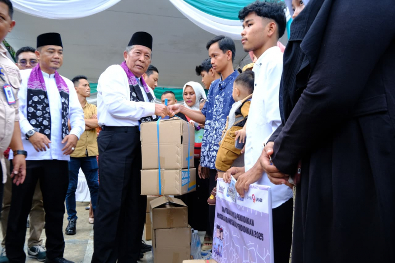 TANJABBAR - Wakil Gubernur Jambi Drs. H. Abdullah Sani M.Pd.I menyalurkan 503 Bantuan Dumisake Pendidikan untuk Jenjang SMA, SMK dan SLB Se- Kabupaten Tanjung Jabung Barat Tahun 2025, bertempat di SMAN 1 Tanjung Jabung Barat, Sabtu (29/11/2025).