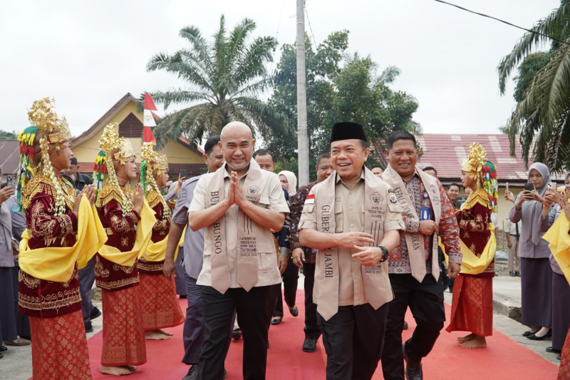 BUNGO, Bungopos.com - Gubernur Jambi Dr. H. Al Haris, S.Sos, MH mengemukakan, Pemerintah Provinsi (Pemprov) Jambi perlu menyiapkan generasi muda sebagai penerus bangsa, yang merupakan aset bangsa yang perlu ditingkatkan SDM nya. Hal tersebut dikemukakannya saat menyerahkan bantuan dana Dumisake untuk pendidikan jenjang SMA, SMK dan SLB tahun 2025, sekaligus Launching SMK N Titian Teras Bungo dan Pelantikan Siswa-Siswi sebagai bagian dari komitmen pemerintah provinsi untuk meningkatkan kualitas pendidikan di Provinsi Jambi, bertempat di SMK Negeri Titian Teras Babeko Kecamatan Babeko, Kabupaten Bungo, Kamis (04/12/2025).