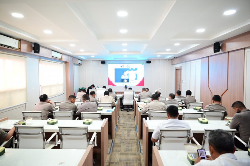 Sementara itu, jajaran Polda Jambi mengikuti kegiatan secara virtual dari Ruang Vidcon Mapolda Jambi yang dihadiri oleh Wakapolda Jambi Brigjen Pol. B. Ali, para pejabat utama, serta personel terkait lainnya.