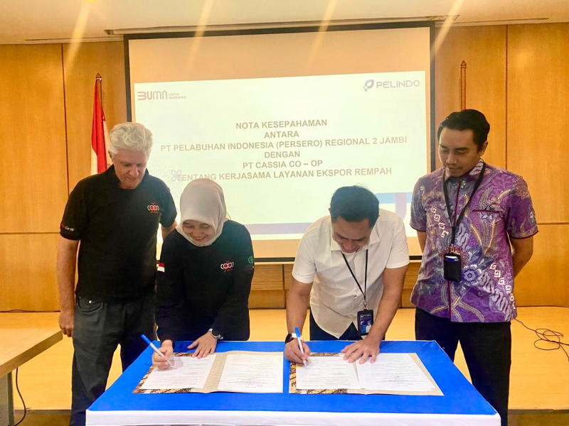 Penandatanganan MoU dan Berita Acara Kesepakatan ini turut dihadiri jajaran manajemen Pelindo Regional 2 Jambi dan IPC Terminal Peti Kemas Area Jambi, serta Founder dan Direktur PT Cassia Co-Op.
