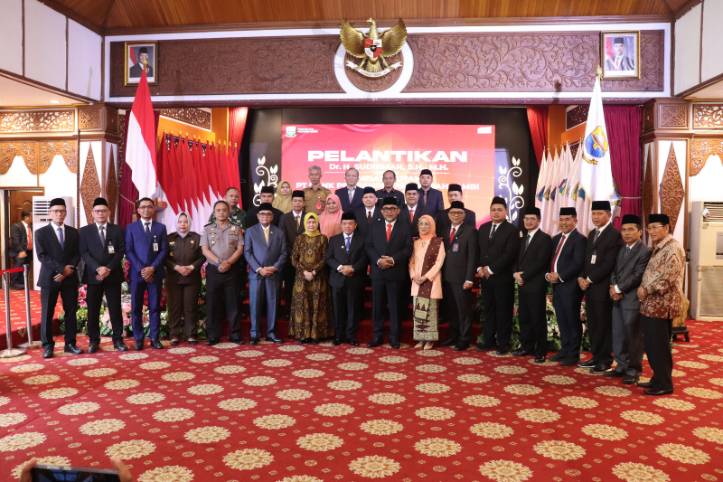 JAMBI, Bungopos.com - Gubernur Jambi Dr. H. A Haris, S.Sos., M.H, resmi melantik Dr. H. Sudirman, S.H., M.H sebagai Komisaris Utama Bank Jambi yang baru masa bakti 2026-2030, di Auditorium rumah dinas gubernur, yang disaksikan langsung oleh Komisaris Utama yang lama Hj. Emilia, M.E, Kepala OJK Provinsi Jambi, Kepala KPw Bank Indonesia Provinsi Jambi, Kepala BPKP Provinsi Jambi, Wakil Ketua DPRD Provinsi Jambi Ivan Wirata, Perwakilan Kejati, Perwakilan Polda Jambi, Dewan Komisaris, Jajaran Direksi Bank Jambi, Pimpinan Cabang, Pimpinan Divisi, Pensiunan Bank Jambi, para Kepala OPD Provinsi Jambi, karyawan dan karyawati Bank Jambi. Dalam sambutannya, Gubernur Al Haris berharap Komisaris Utama yang baru mampu menjalankan tugas dengan baik, menjaga kepentingan perusahaan, serta memberikan kontribusi nyata terhadap pembangunan Provinsi Jambi melalui penguatan sektor perbankan daerah.